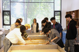 10月16日,广西师范大学设计学院视觉传达设计(中外合作办学)专业师生一行120人赴我校艺术学院进行交流访问。本次活动以“手工造纸与文创设计实践工作坊”为主要内容,在呈贡校区汇学一栋众创中心顺利开展,旨在促进两校之间的教学互动与学术共享,拓展学生的专业视野,共同探索艺术设计人才培养的创新路径。