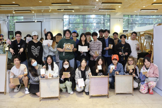 工作坊以传统非遗手工造纸技艺为切入点,结合视觉传达设计专业特点,组织学生亲身参与造纸实践,并引导其运用手工纸材料进行文创产品与手工书创作。活动不仅强化了学生的动手能力与创意表达,也加深了他们对材料语言与传统文化价值的认知与理解。